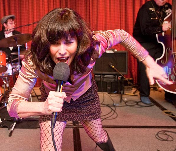 got her first start in music singing in the Baptist choir, but from the first time she heard her grand-daddy play clawhammer banjo and imitate a train whistle on his harmonica, her soul was captured by the raw sounds of hillbilly music". It's been many years (like a long, long time ago) since a female musician has commanded such respect on the rockabilly scene. She's not just another pretty face. She writes her own songs, from honky tonk to rockabilly, Betsy-Dawn is a talented musician and hell on a scooter.